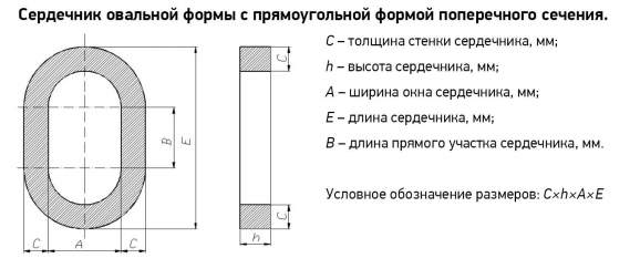 Главная → Покупателям →Продукция →Магнитопроводы АМЕТ. →Формы сердечников и исполнение магнитопроводов. →Сердечник овальной формы с прямоугольной формой поперечного сечения.